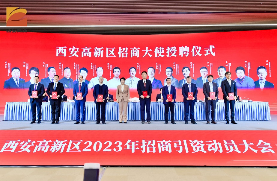 1月29日,西安高新區召開2023年招商引資動員大會,通報了今年招商引資實施方案和考核辦法,舉行了重點產業鏈項目簽約和招商大使授聘儀式,并為產業鏈招商分隊出征授旗,為全年招商引資工作錨定了目標、明確了方向。