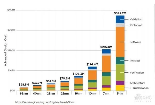 使用先進節點的好處很多,晶體管密度更大、占用空間更少、性能更高、功率更低,但挑戰也越來越難以克服。極小尺寸下,芯片物理瓶頸越來越難以克服。尤其在近幾年,先進節點走向10nm、7nm、5nm,問題就不再只是物理障礙了,節點越進化,微縮成本越高,能擔負巨額研發費用并實現盈利的設計公司越來越少。